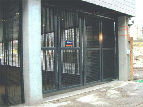 Sicherheitsrutschkupplung, vertikale elektrische Sicherheitskontaktschienen an den Hauptschließkanten (auch pneumatische Ausführung möglich). 2 Stück horizontale Kontaktschienen am Boden, im Falle, dass eine Quetschgefahr besteht, zwischen Bürgersteig und Tor-Öffnungsweg, Lichtschrankeneinheit in der lichten Toröffnung.
